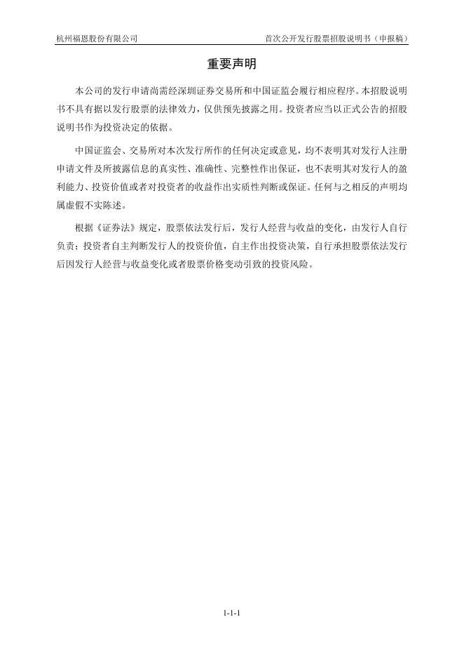 杭州福恩股份有限公司深主板IPO上市招股说明书.pdf