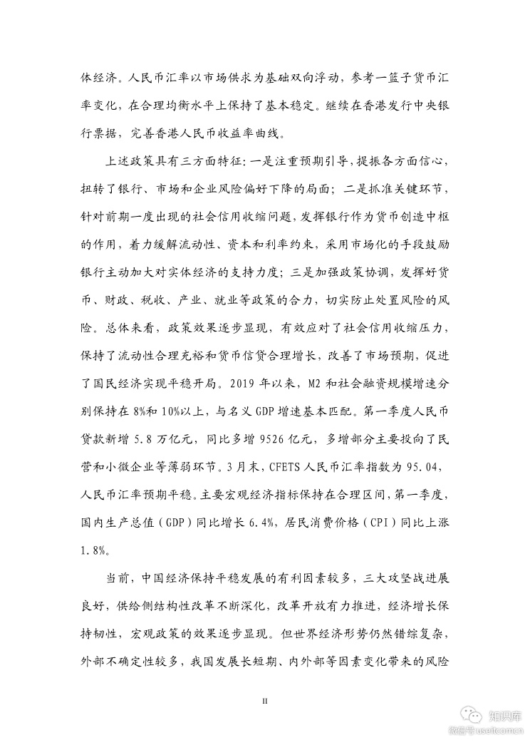 中国人民银行:2019年第一季度中国货币政策执行报告.pdf