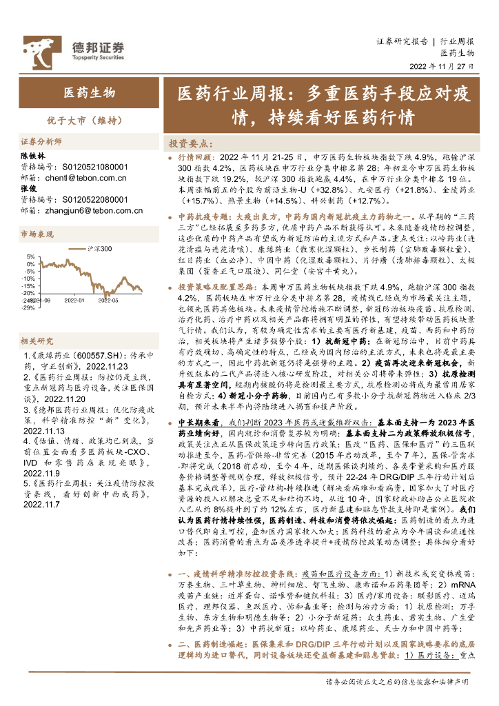 德邦证券:医药行业周报:多重医药手段应对疫情,持续看好医药行情.pdf
