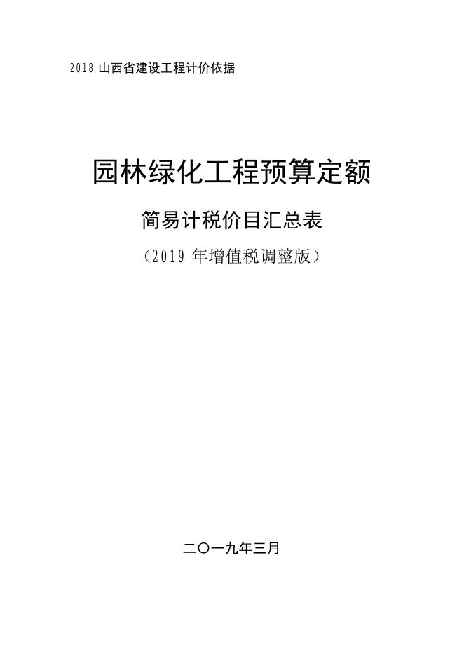 山西省园林绿化工程预算定额 简易计税价目汇总表(2019年增值税调整版).pdf