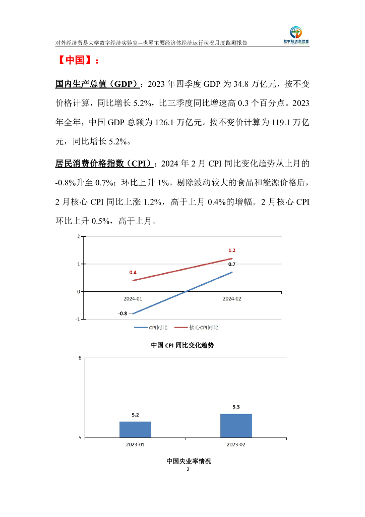 对外经济贸易大学:世界主要经济体经济运行状况月度监测报告(2023年2月).pdf
