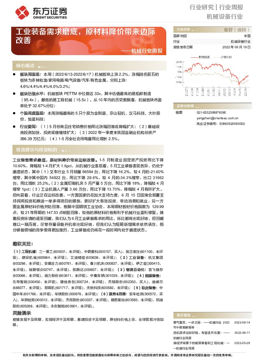 东方证券:机械行业周报:工业装备需求磨底,原材料降价带来边际改善.pdf