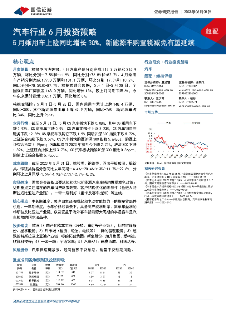 国信证券:汽车行业6月投资策略:5月乘用车上险同比增长30%,新能源车购置税减免有望延续.pdf