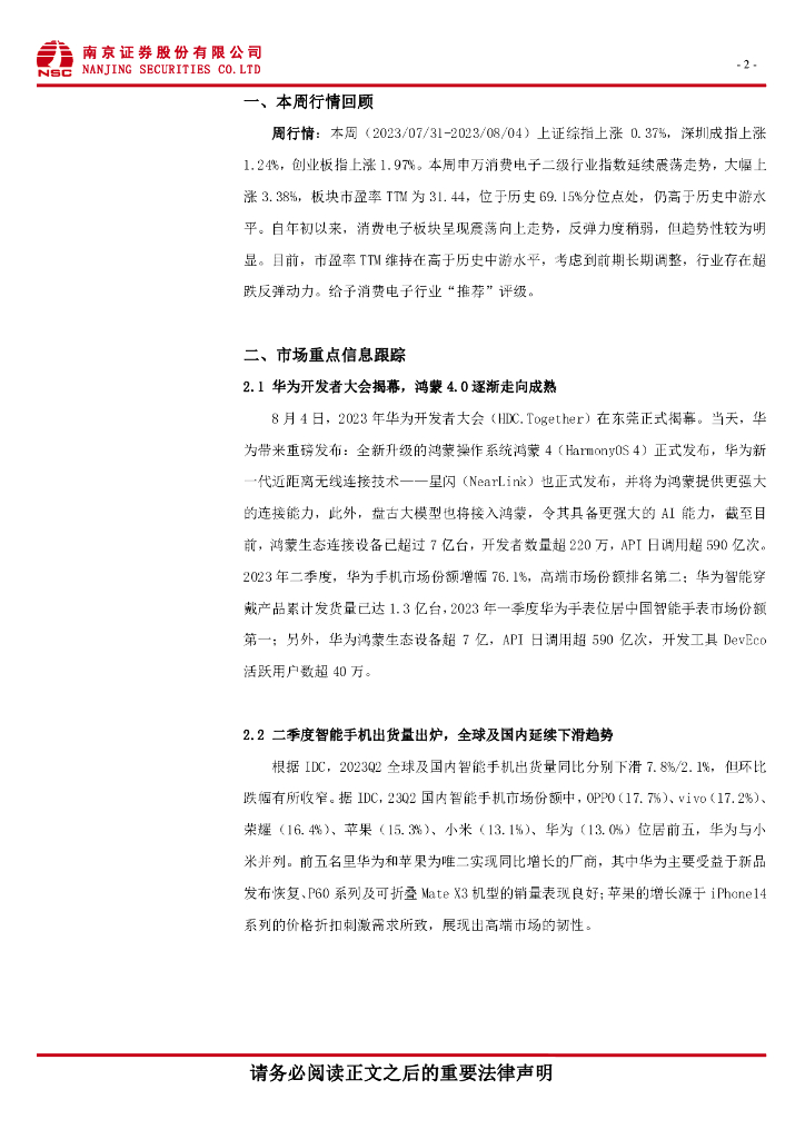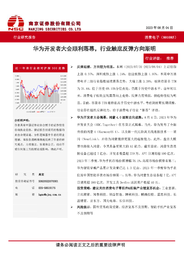 南京证券:消费电子:华为开发者大会顺利落幕,行业触底反弹方向渐明.pdf