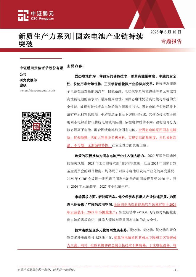 中证鹏元:新质生产力系列|固态电池产业链持续突破.pdf