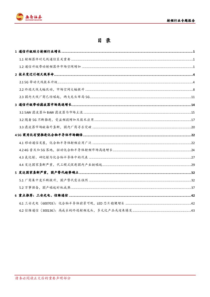 西南证券:射频行业专题报告:5G拉动射频器件需求,国产化趋势已经确立.pdf