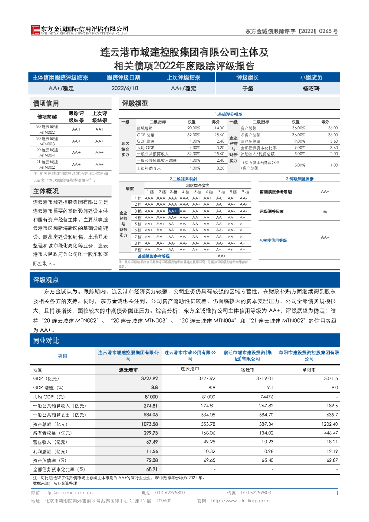 东方金诚:连云港市城建控股集团有限公司主体及相关债项2022年度跟踪评级报告.pdf