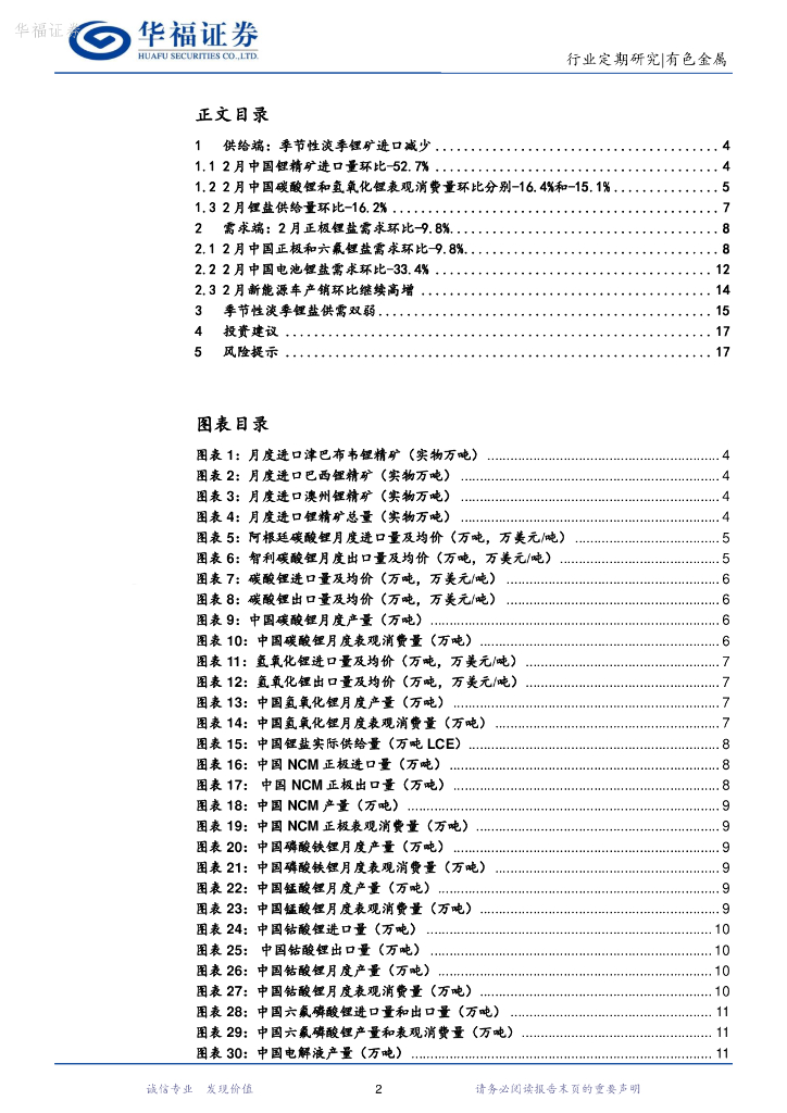 华福证券:锂产业链月度追踪:1-2月季节性淡季锂供需双弱,3月旺季补库带动锂价短期反弹.pdf