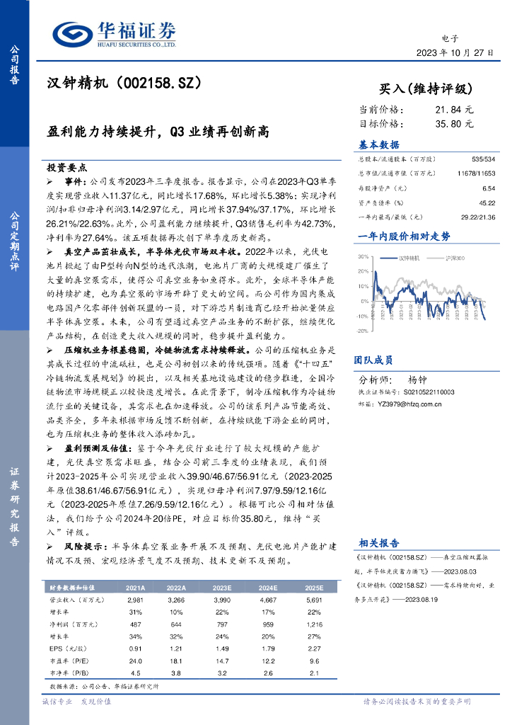 华福证券:汉钟精机(002158)-盈利能力持续提升,Q3业绩再创新高.pdf