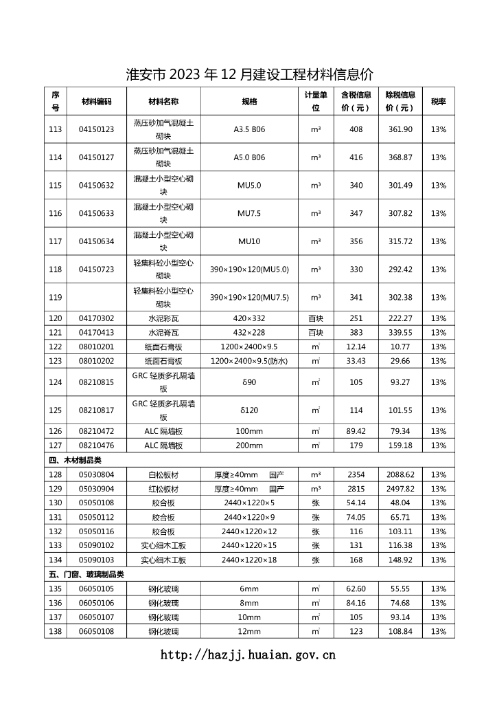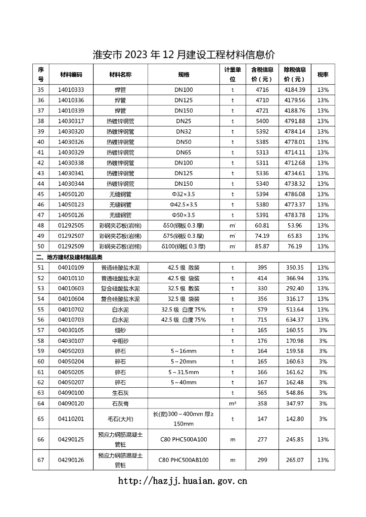 淮安市 2023 年 12 月建设工程材料信息价.pdf