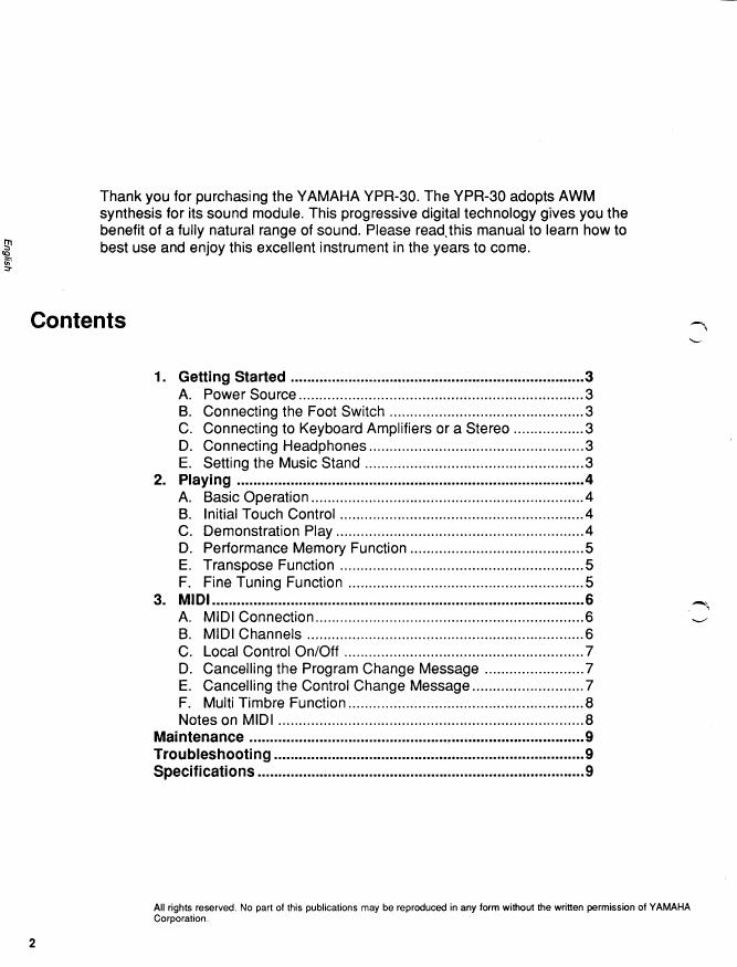 YAMAHA YPR-30 PORTABLE PIANO 用户手册.pdf