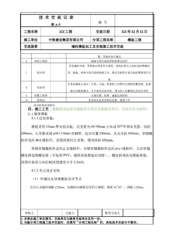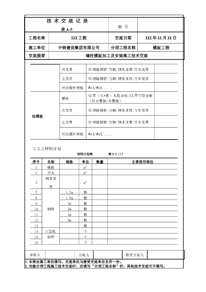 墙柱模板加工及安装施工技术交底.doc