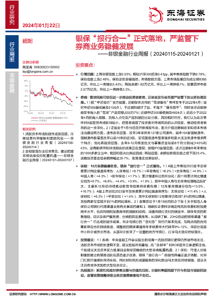 东海证券:非银金融行业周报:银保“报行合一”正式落地,严监管下券商业务稳健发展.pdf