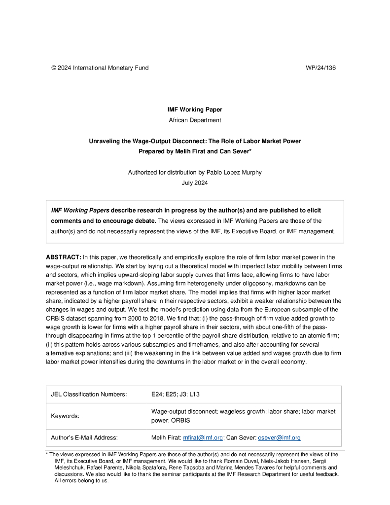 国际货币基金组织:解开工资产出脱节:劳动力市场力量的作用(英文版).pdf