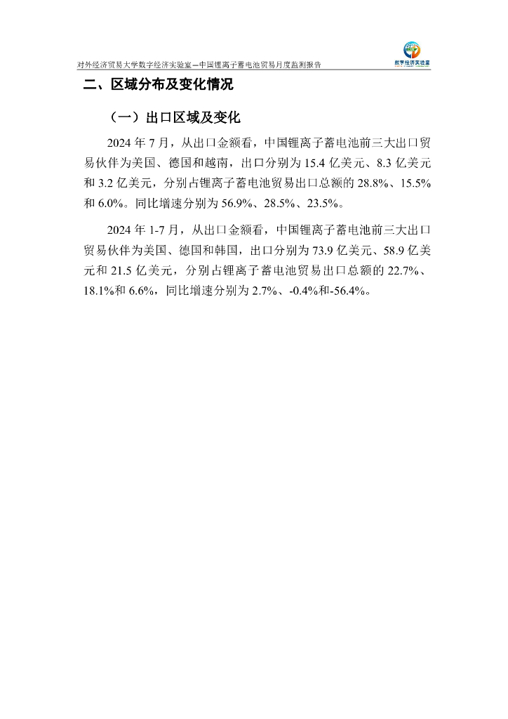 对外经济贸易大学:中国锂离子蓄电池贸易月度监测报告(2024年1-7月).pdf