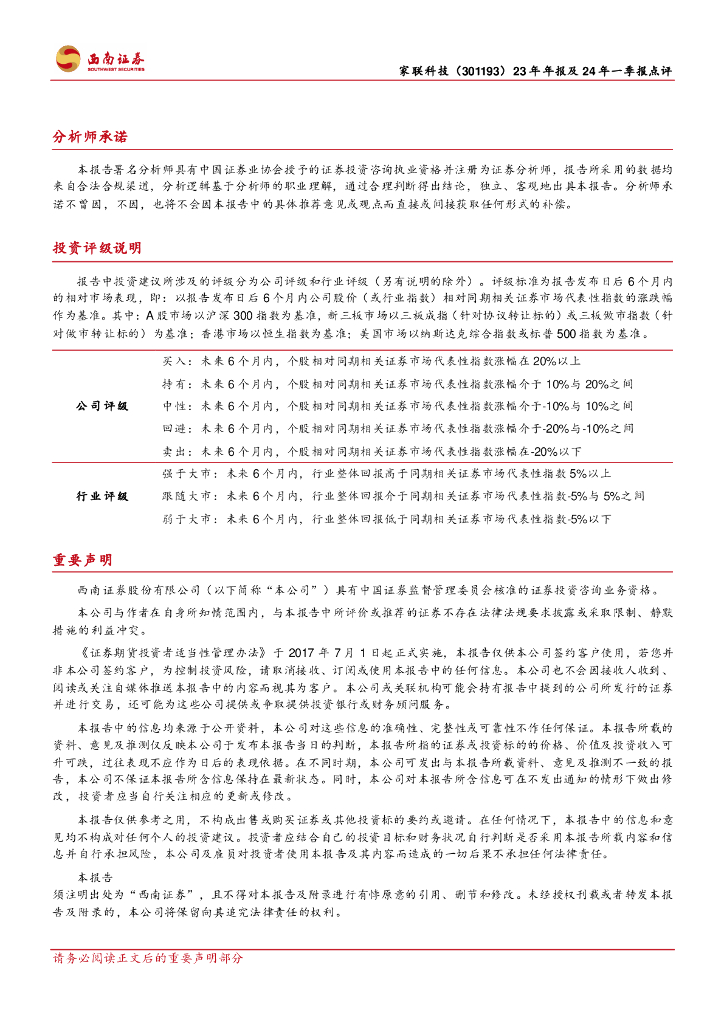 西南证券:家联科技(301193)-23年年报及24年一季报点评:内销保持高增,外销边际修复,盈利改善可期.pdf