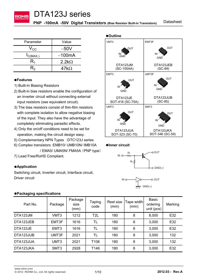 ROHM DTA123JE series 数据手册.pdf