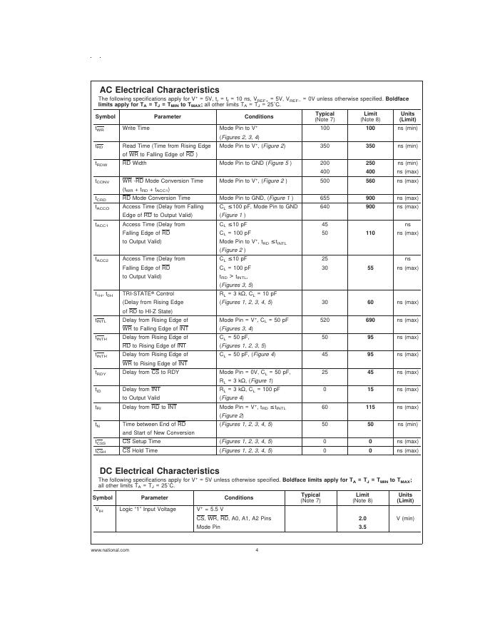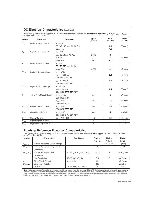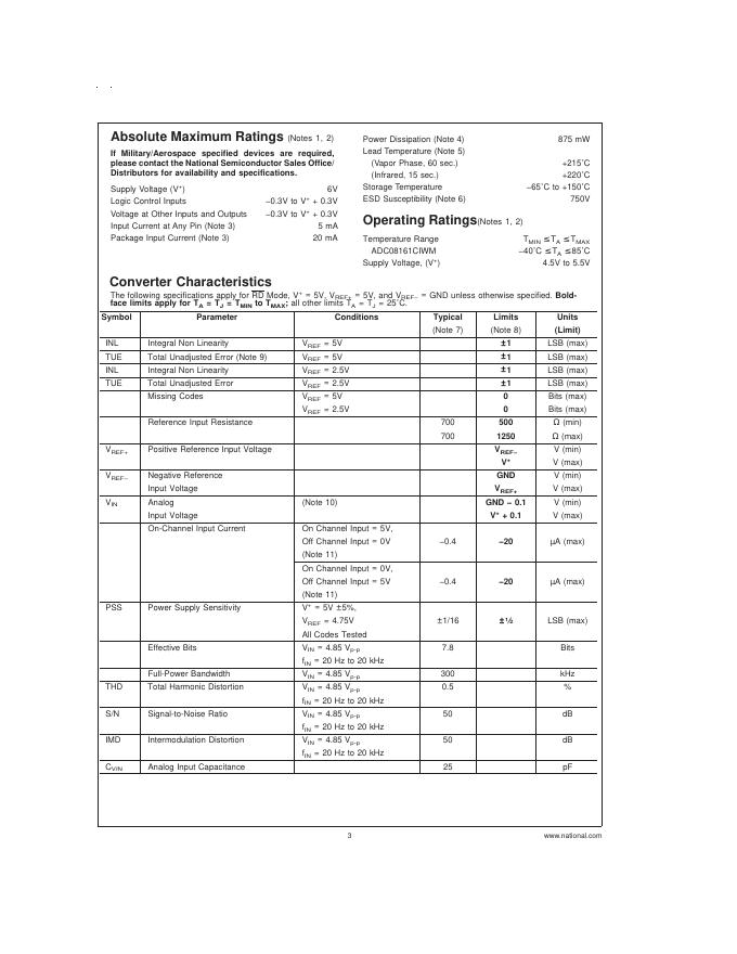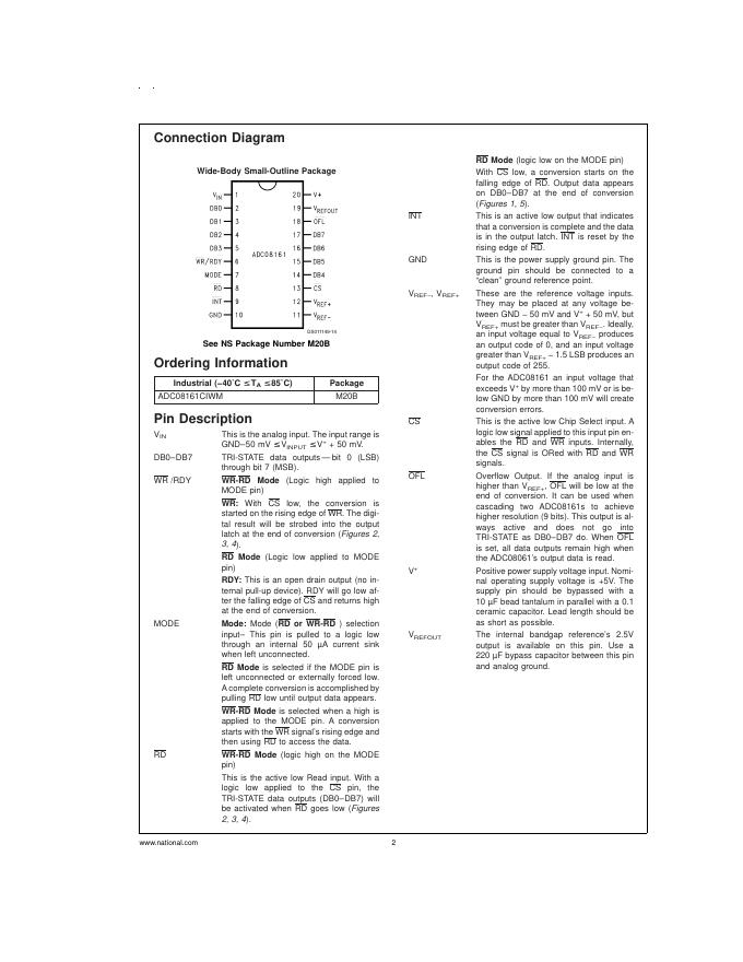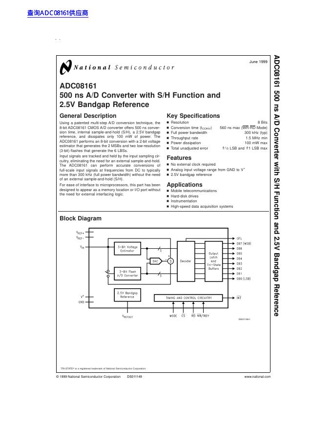 National Semiconductor ADC08161 500 ns A/D Converter with S/H Function and 2.5V Bandgap Reference 数据手册.pdf
