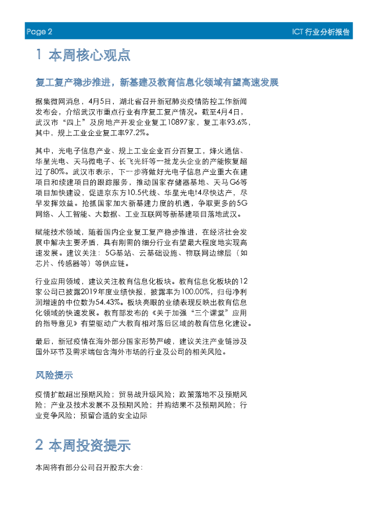 首创证券:ICT行业周报:复工复产稳步推进,新基建及教育信息化领域有望高速发展.pdf