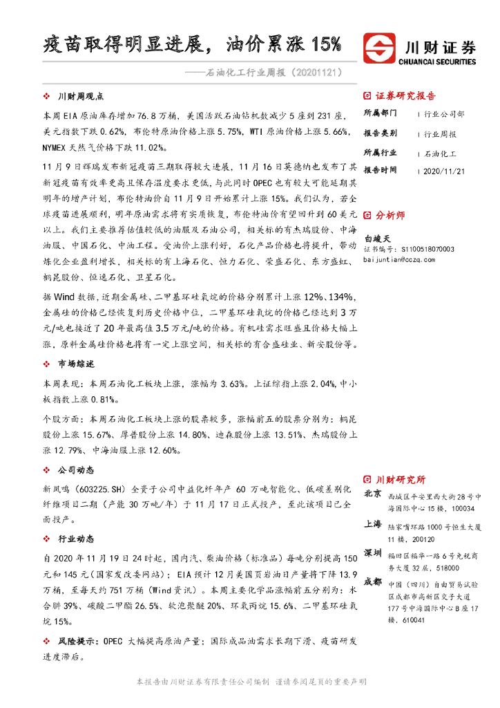川财证券:石油化工行业周报:疫苗取得明显进展,油价累涨15%.pdf