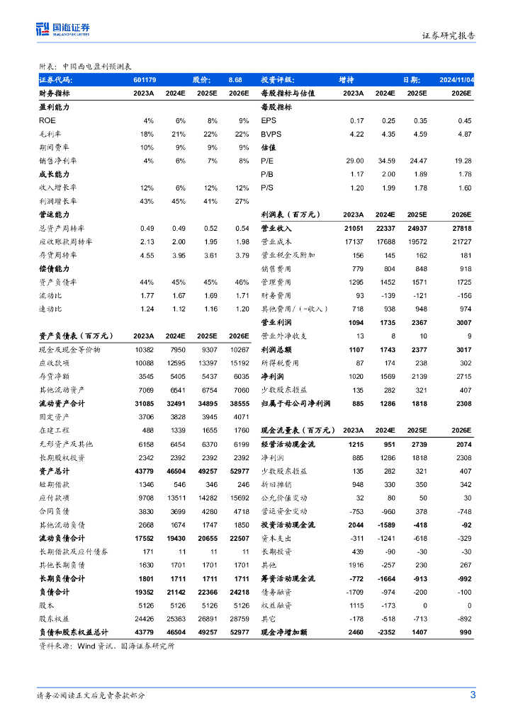国海证券:中国西电(601179)-2024年三季报点评:公司盈利能力同比明显提升,有望受益特高压柔直高景气.pdf