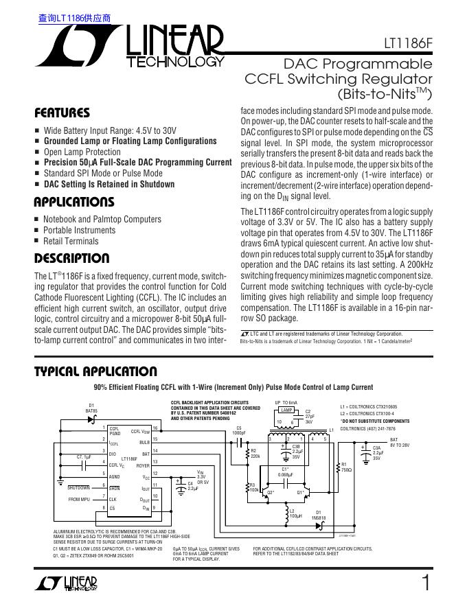 LINEAR TECHNOLOGY LT1186F 数据手册.pdf