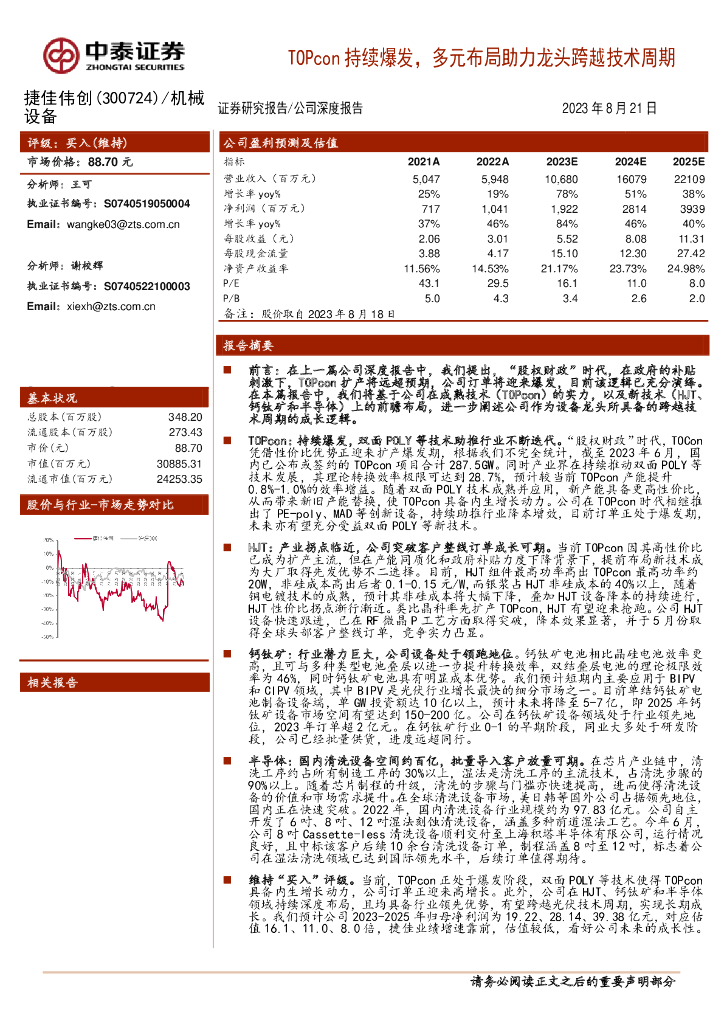 中泰证券:捷佳伟创(300724)-TOPcon持续爆发,多元布局助力龙头跨越技术周期.pdf