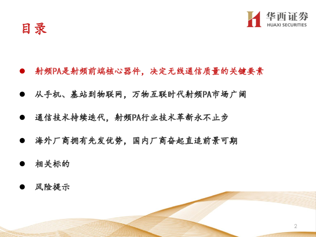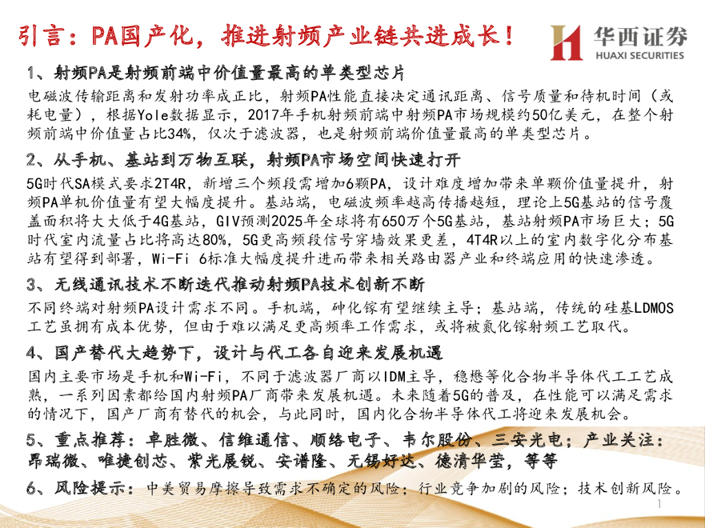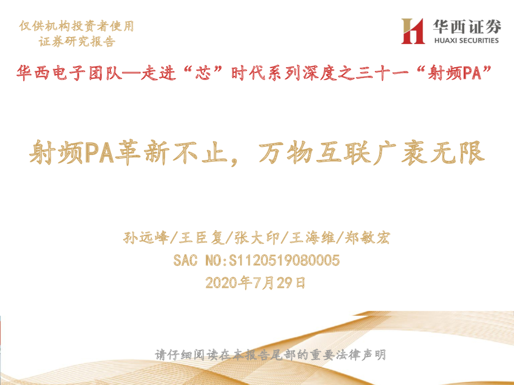 华西证券:走进“芯”时代系列深度之三十一“射频PA”:射频PA革新不止,万物互联广袤无限.pdf