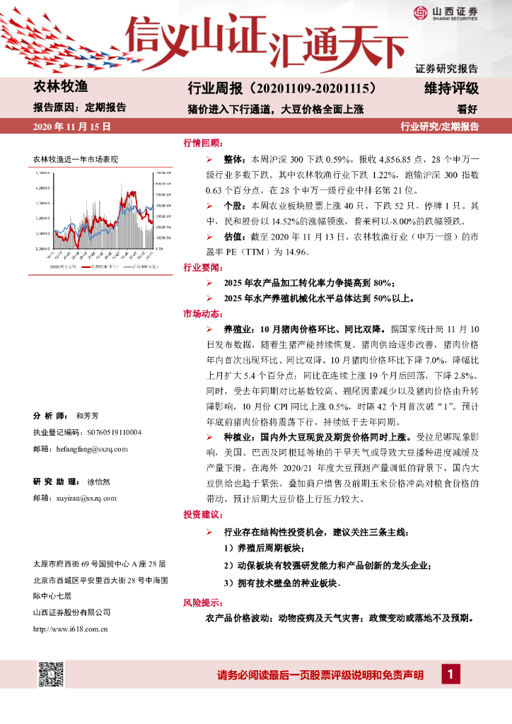 山西证券:农林牧渔行业周报:猪价进入下行通道,大豆价格全面上涨.pdf