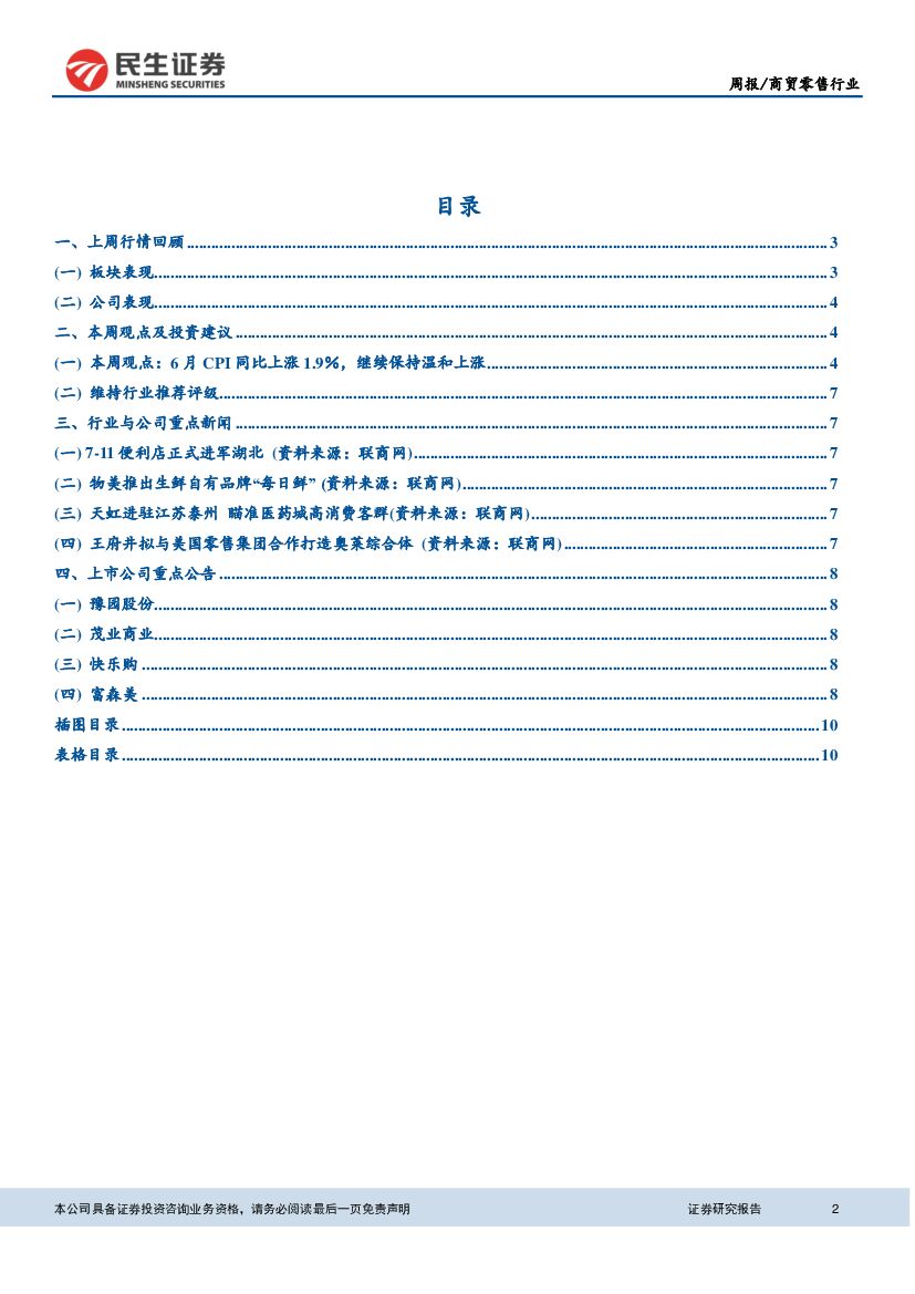 民生证券:商贸零售行业周报:6月CPI同比上涨1.9%,继续保持温和上涨.pdf