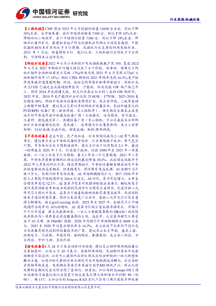 中国银河:机械设备行业周报:CME预估8月挖机销量1.26万台,核污水排海关注检测设备需求.pdf