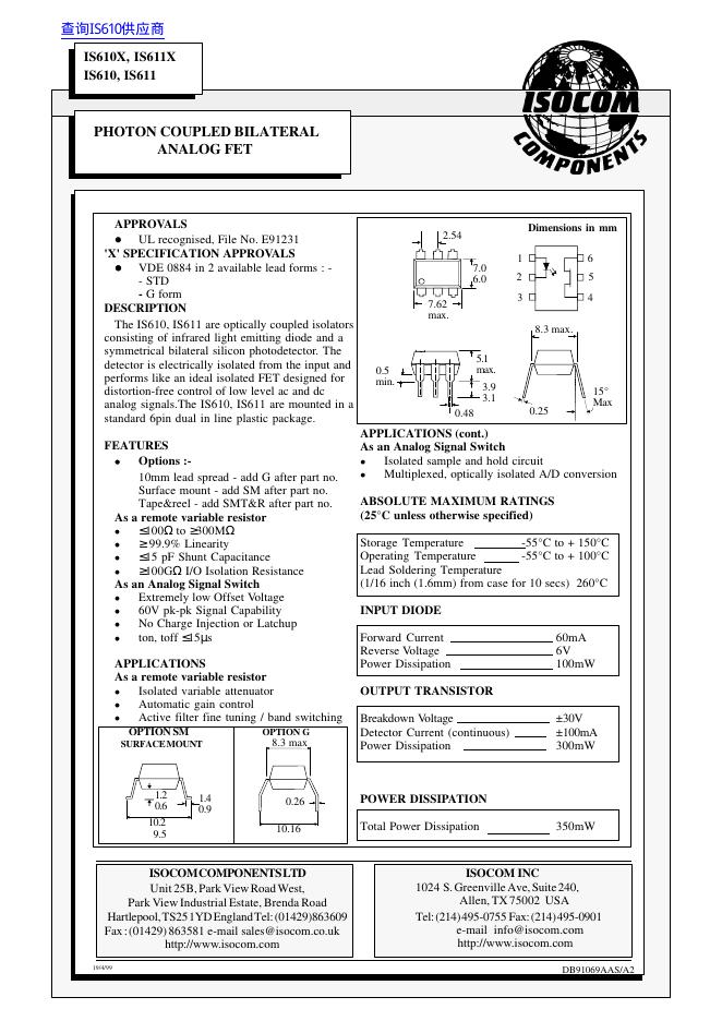 isocom IS610X, IS611X IS610, IS611 数据手册.pdf
