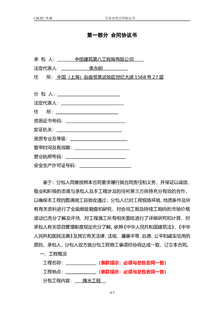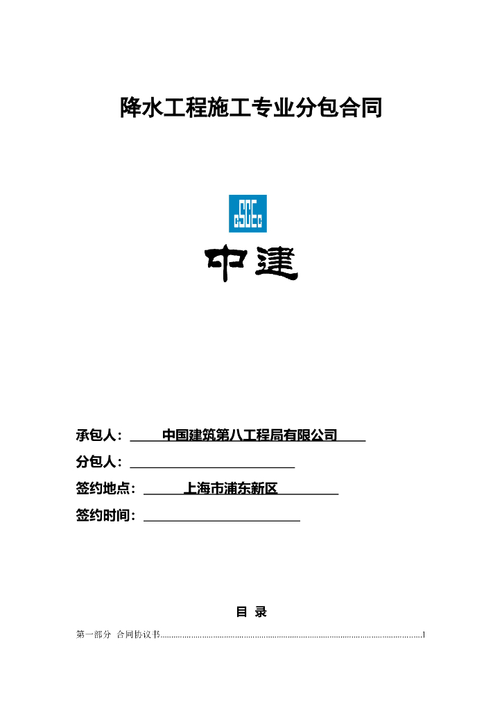 中建降水工程施工专业分包合同范本.doc