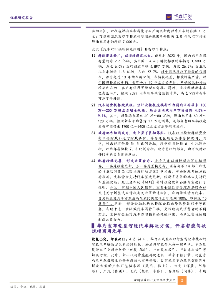 华鑫证券:汽车行业周报:特斯拉发布2024Q1财报,汽车以旧换新细则确定,华为乾崑智能汽车解决方案亮相.pdf