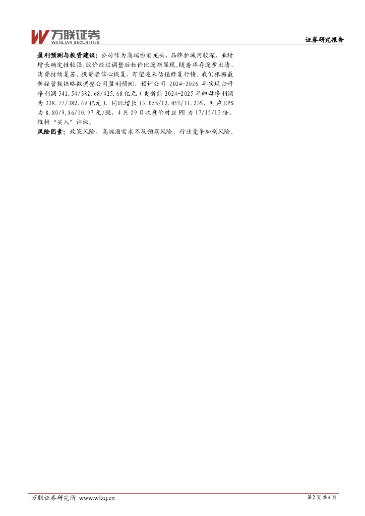 万联证券:五粮液(000858)-2023年报&2024一季报点评报告:营收利润稳增长,质量回报双提升.pdf