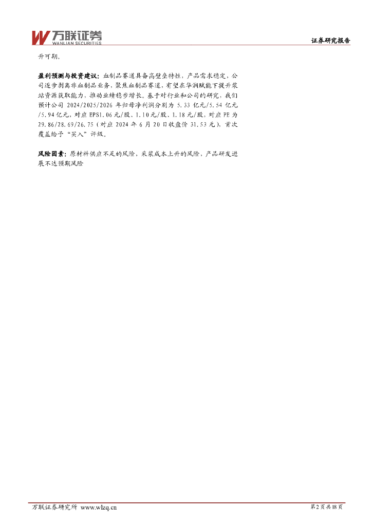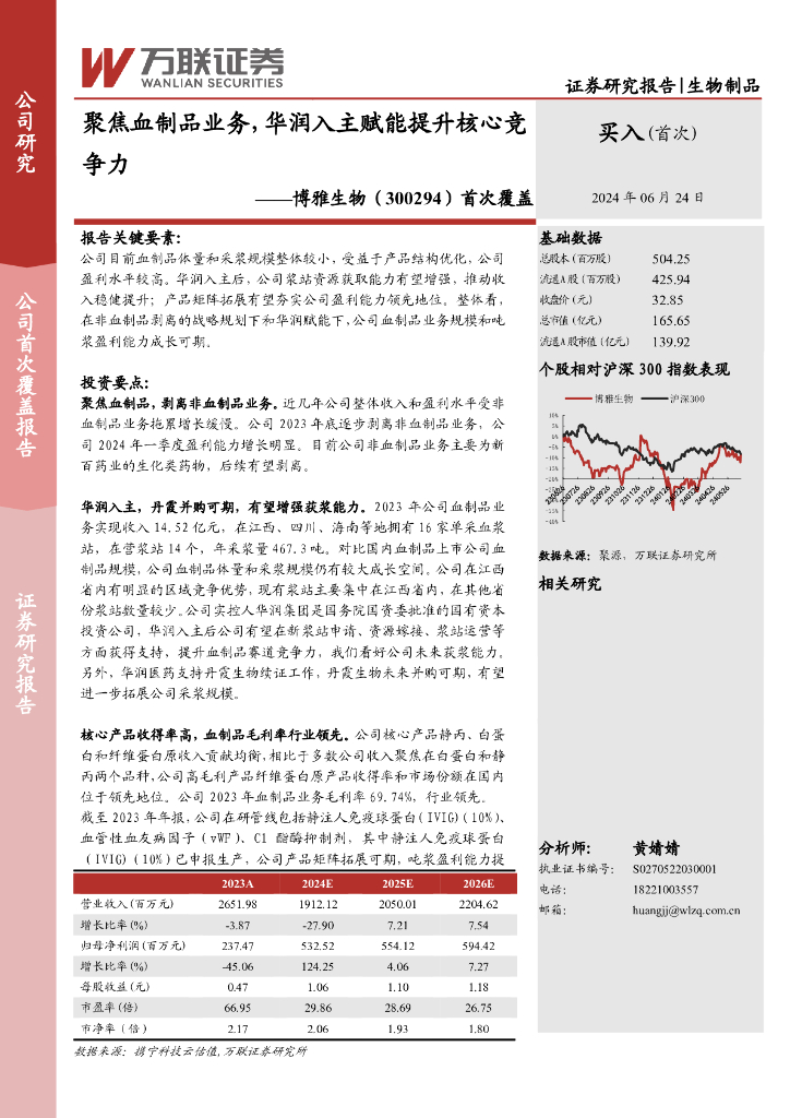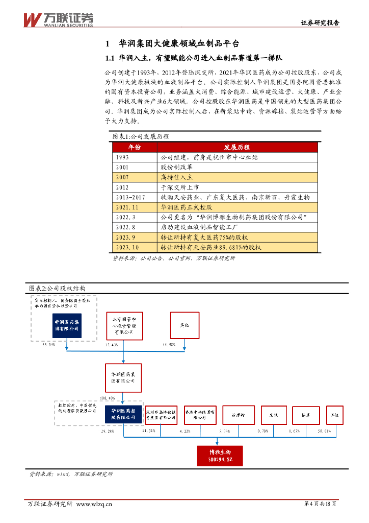 万联证券:博雅生物(300294)-首次覆盖:聚焦血制品业务,华润入主赋能提升核心竞争力.pdf