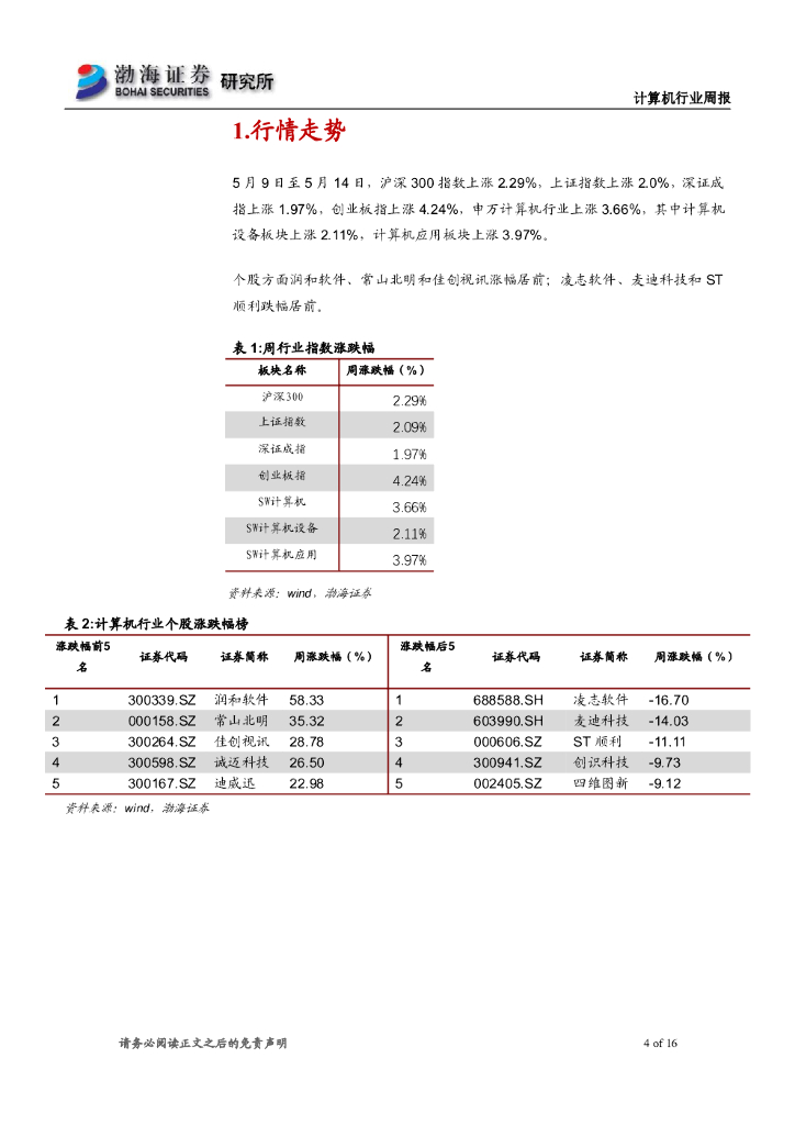 渤海证券:计算机行业周报:市场大幅上涨,关注云计算板块.pdf
