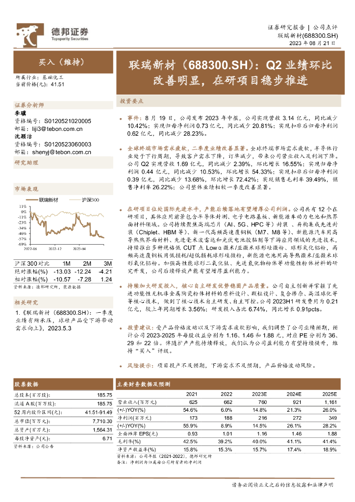 德邦证券:联瑞新材(688300)-Q2业绩环比改善明显,在研项目稳步推进.pdf