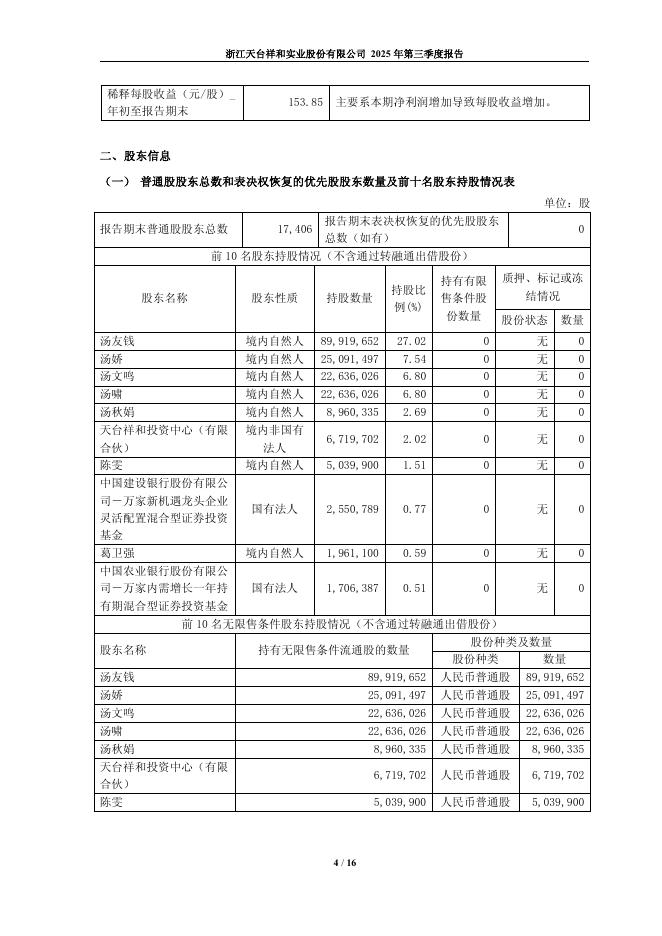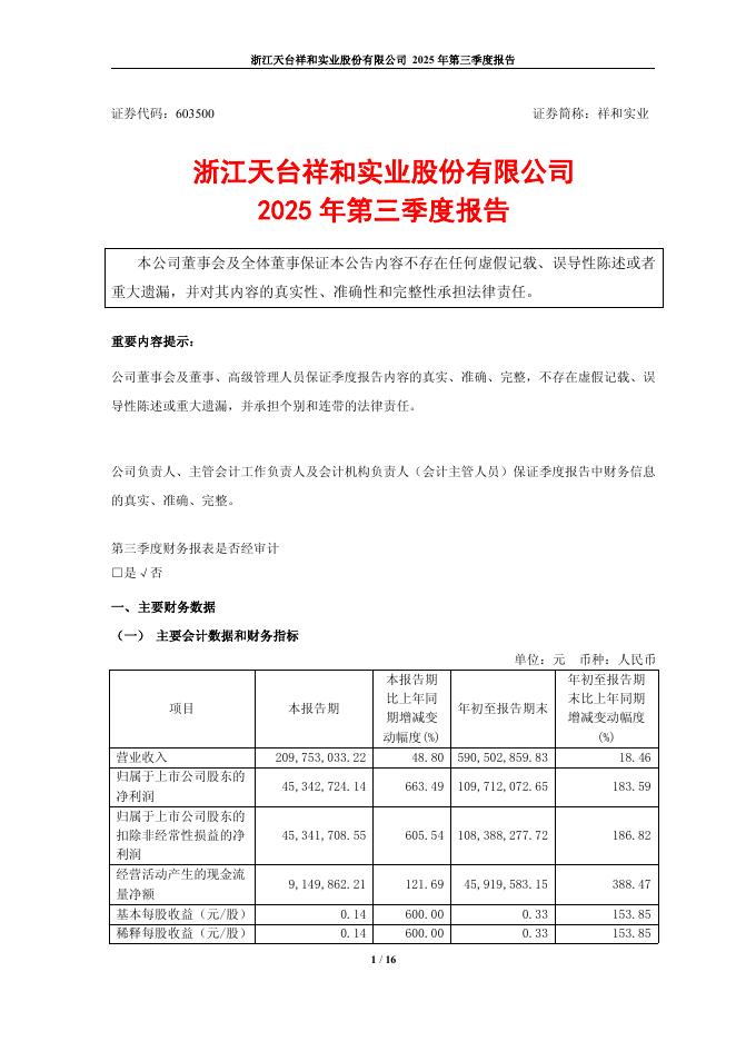 603500-祥和实业:浙江天台祥和实业股份有限公司2025年第三季度报告.pdf