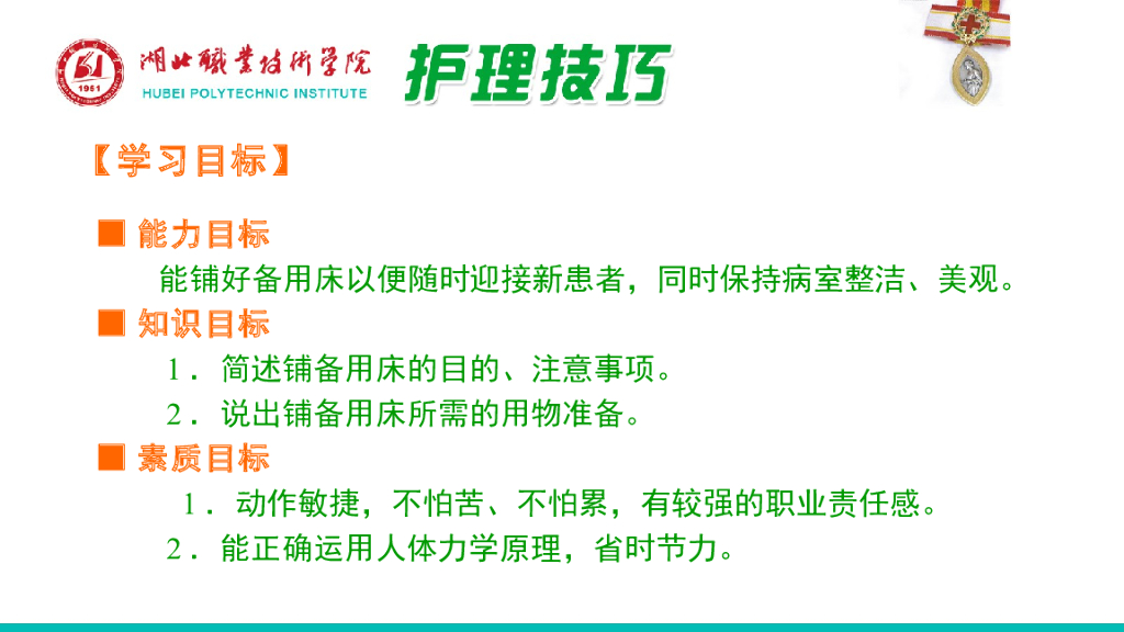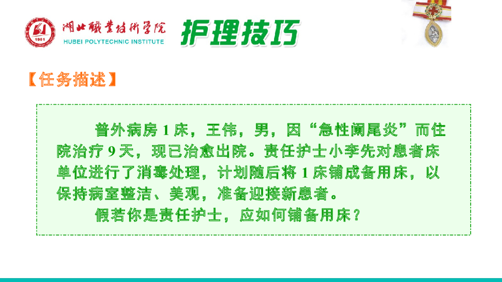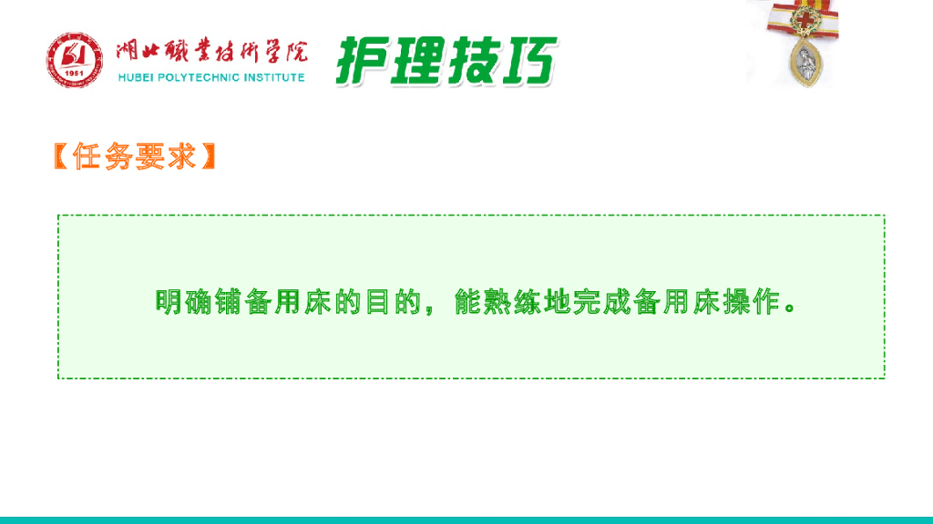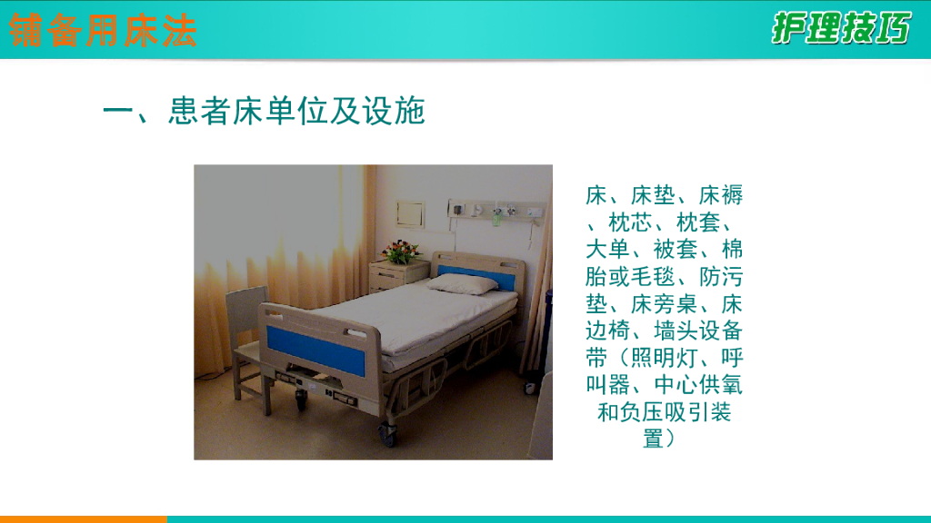 《护理技巧》演示文稿-子任务一 铺备用床.pdf