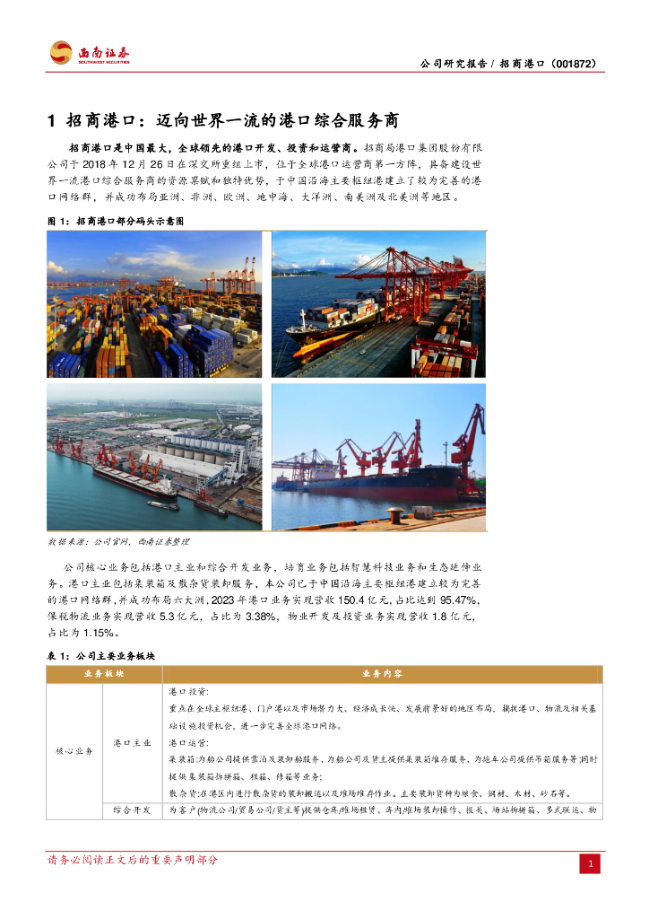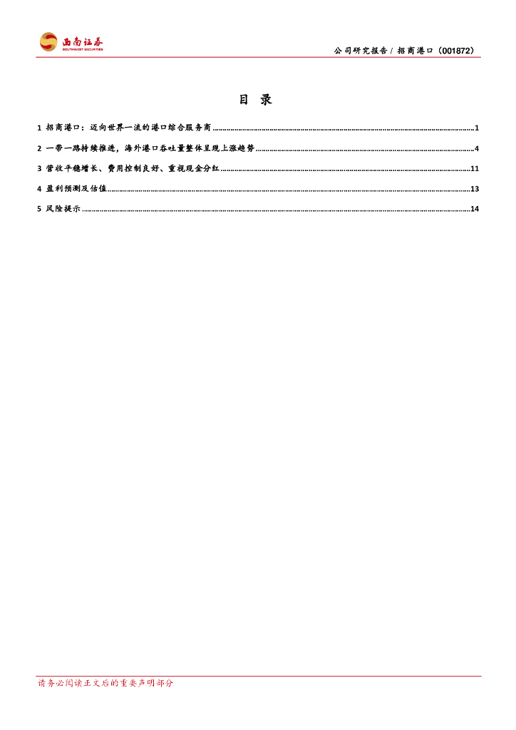 西南证券:招商港口(001872)-全球领先港口运营商,受益于一带一路新机遇.pdf