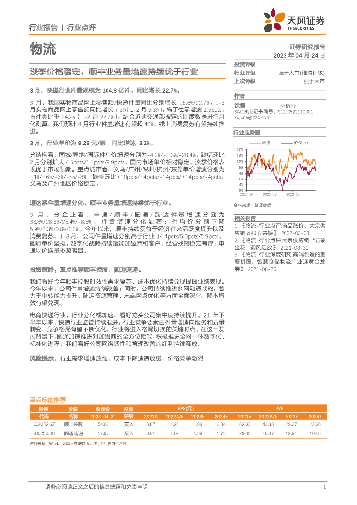 天风证券:物流:淡季价格稳定,顺丰业务量增速持续优于行业.pdf