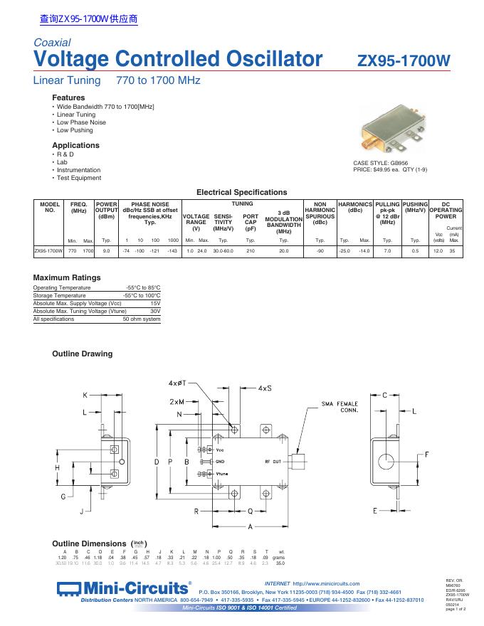 Mini-Circuits ZX95-1700W 数据手册.pdf