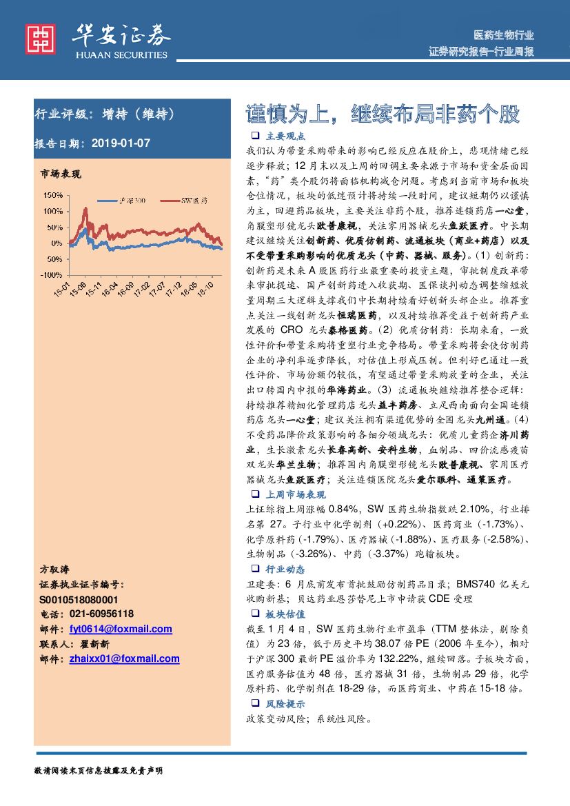 华安证券:医药生物行业周报:谨慎为上,继续布局非药个股.pdf