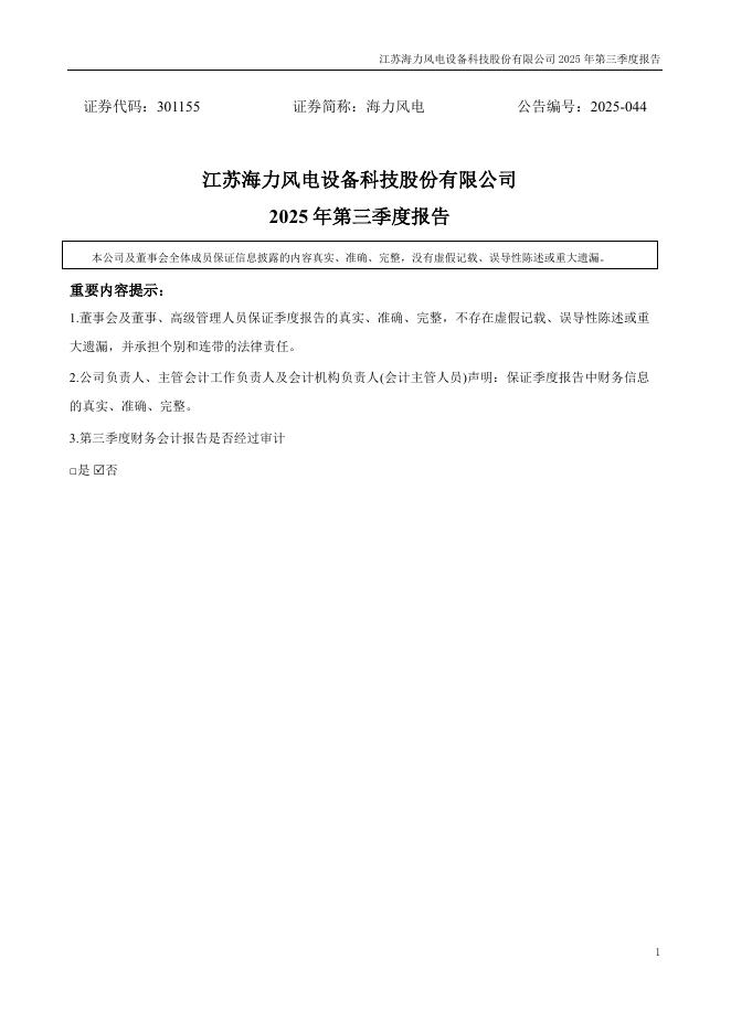 301155-海力风电:2025年三季度报告.pdf