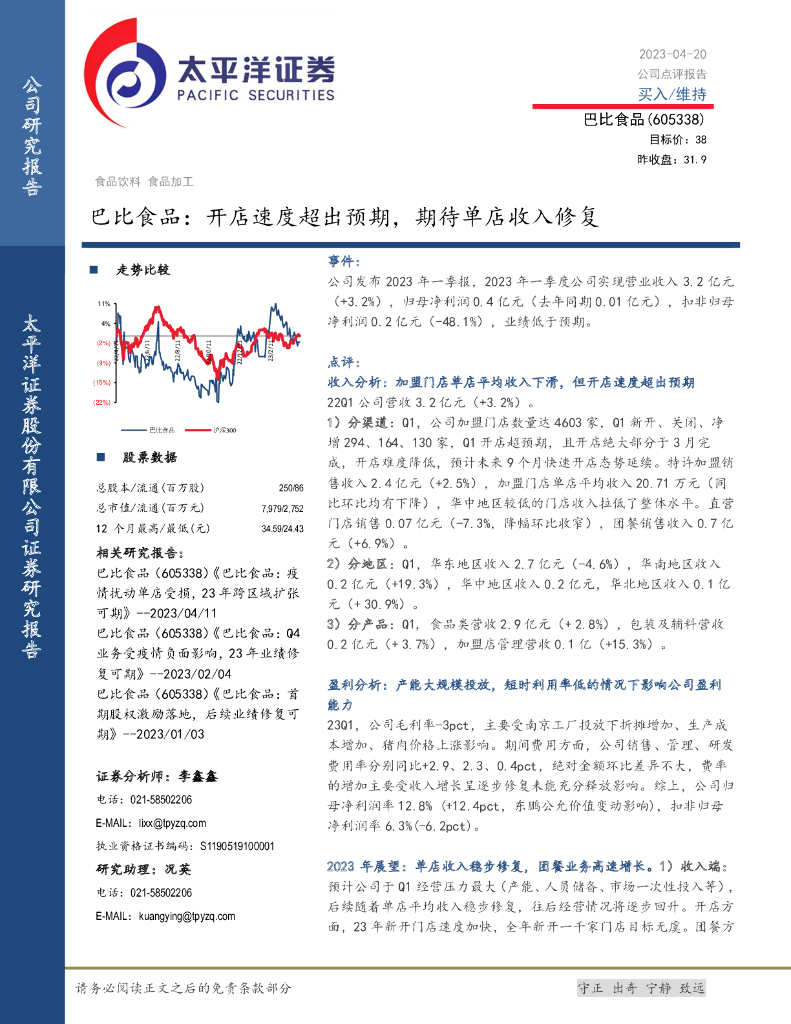 太平洋证券:巴比食品:开店速度超出预期,期待单店收入修复.pdf