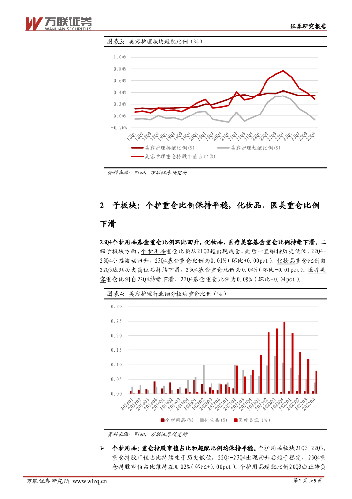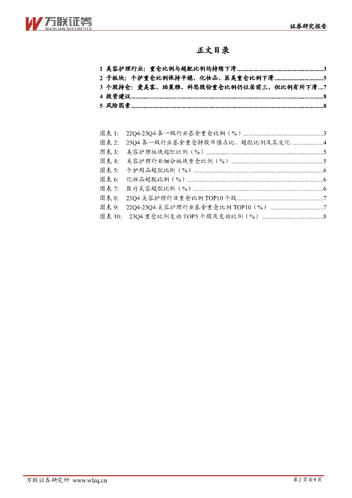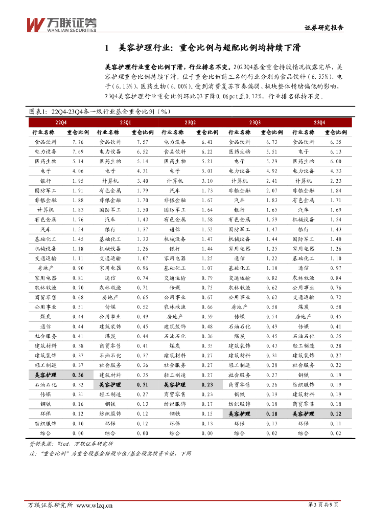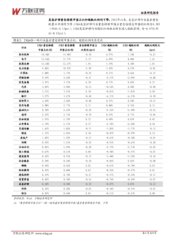 万联证券:美容护理行业2023Q4基金持仓分析:个护重仓保持稳定,化妆品、医美重仓比例持续下滑.pdf
