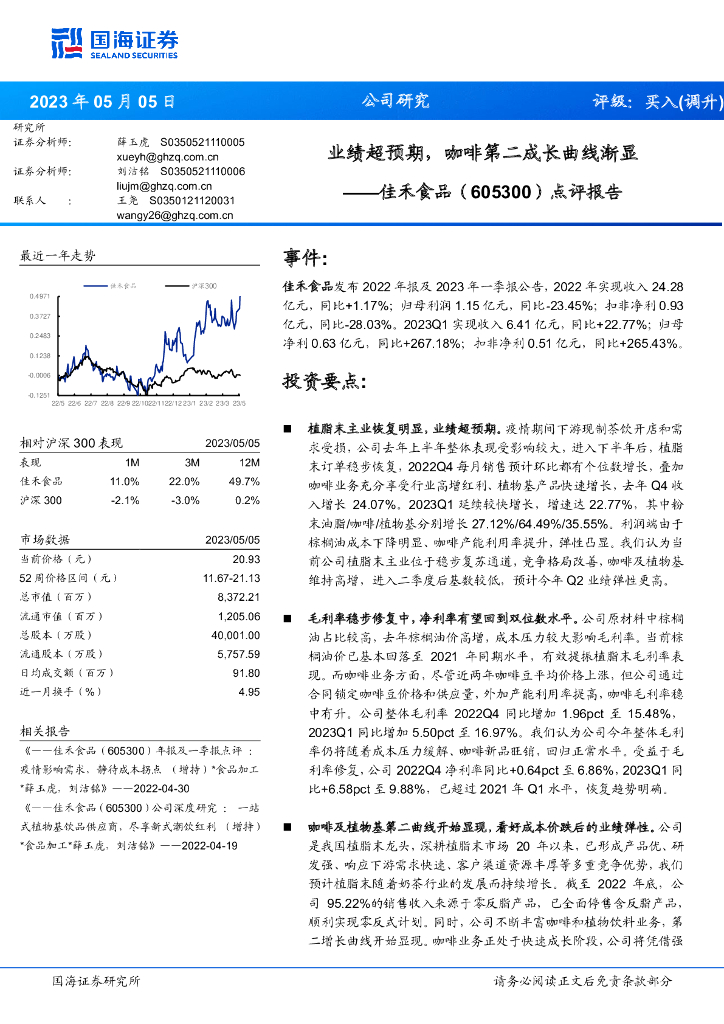 国海证券:佳禾食品(605300)-点评报告:业绩超预期,咖啡第二成长曲线渐显.pdf