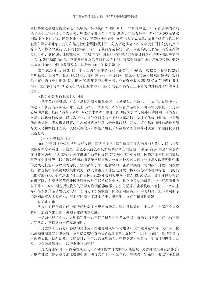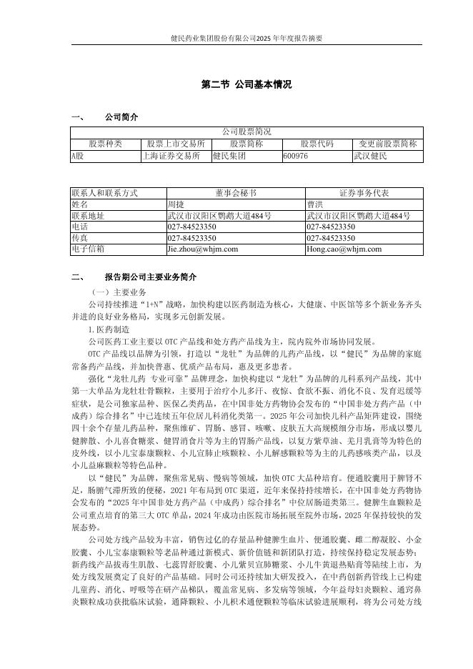 600976-健民集团:健民药业集团股份有限公司2025年年度报告摘要.pdf