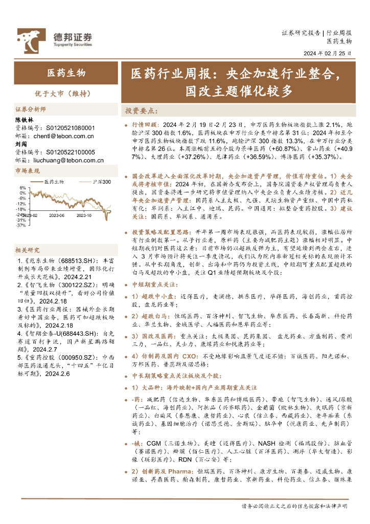 德邦证券:医药行业周报:央企加速行业整合,国改主题催化较多.pdf